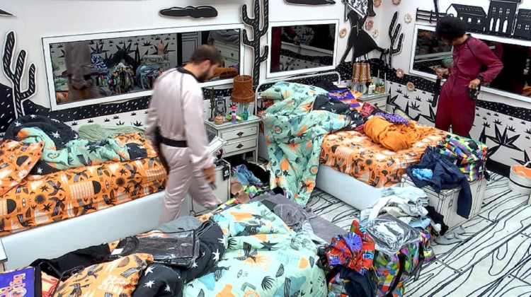 Após o sinal, os brothers vão até a despensa do BBB21, onde encontram roupas especiais. Cada um pega o figurino com seu respectivo nome e começam a se vestir.