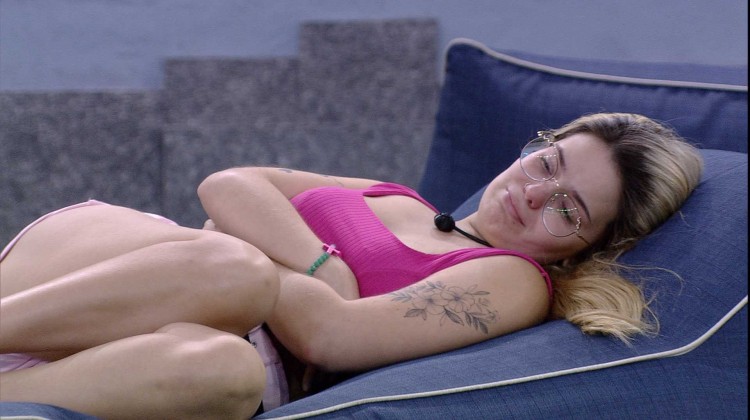 A confinada deita em um dos estofados do espaço e olha para cima. Depois de um tempo em silêncio, Viih Tube chora e cruza os braços. A youtuber se emociona em silêncio e fica com os braços cruzados. Depois de um tempo limpa as lágrimas e mexe em suas pulseiras.